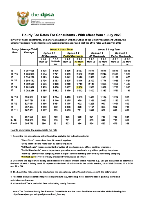 Hourly Fee Rates for Consultants